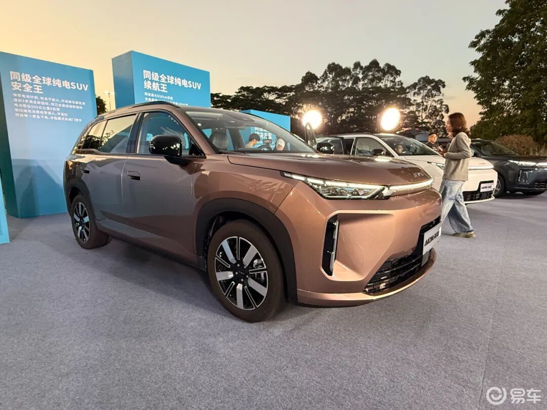先看到纯电车型,新车提供了CLTC纯电续航里程400/530/650公里三种版本可选,提供最大功率150千瓦和165千瓦两种驱动电机。横向对比同级纯电紧凑级SUV,续航超过600公里的车型可谓少之又少,所以,AION i60有备而来。