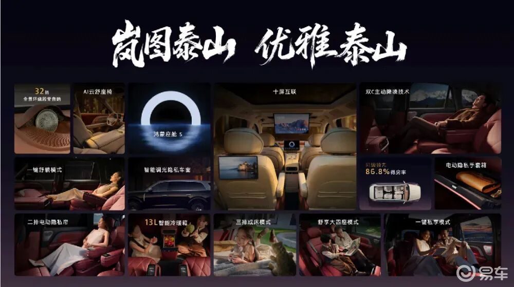 此外,官方宣布岚图泰山上市首销期限时可享价值4.8万元权益,包括5000元定金抵扣8000元车款;首任车主终身免费三电质保;豪华配置升级等五重购车权益。