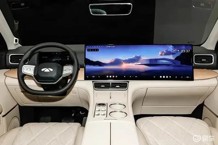 内饰方面,风云T11前后排均配备娱乐大屏,前排为30英寸一体式联屏,后排为17.3英寸的超大屏,全车配备23扬声器,支持AI大模型语音助手,共推出碧玺黑、琥珀棕以及羊脂米三种配色方案。