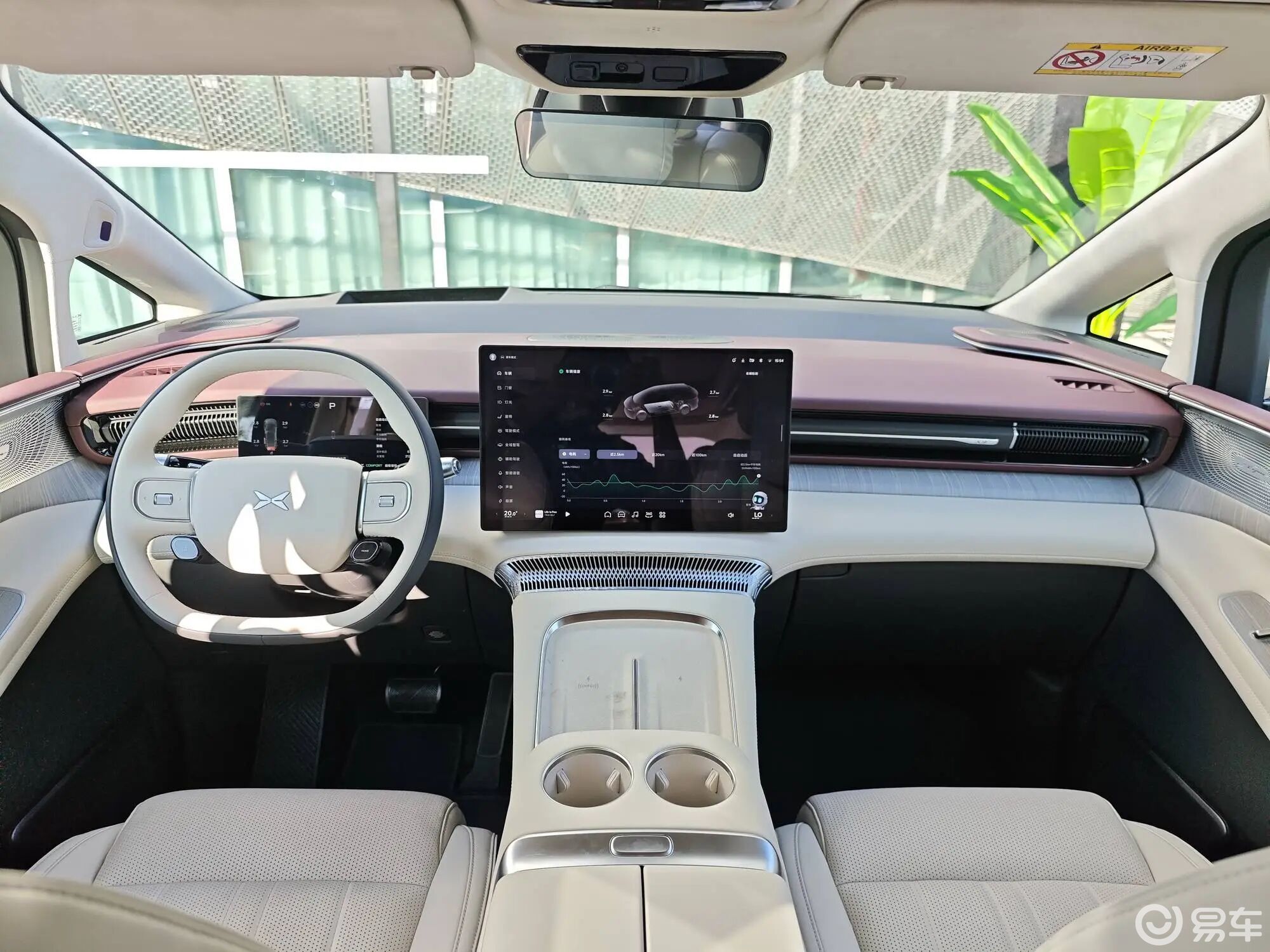 内饰上,小鹏X9增程版采用经典的T字形布局和双色设计,新增“云间玫棕”配色,车内采用100%软包覆,并配备4.2米进口阿尤斯真木,营造出豪华的氛围。同时继续配备17.3英寸中控屏+10.25英寸液晶仪表屏,并采用高通骁龙8295P座舱芯片。中控区域设有两个50W无线充电面板,方向盘延续双辐式设计,换挡机构采用怀挡模式,整体非常豪华。