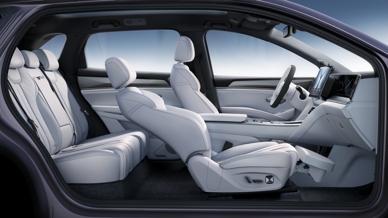 顶配710公里卓越型额外增加26英寸W-HUD抬头显示、主驾8向电动调节、副驾电动腿托、前排座椅按摩、一体式智能冷暖冰箱、智能香氛系统等配置。座椅功能方面,605公里超越型(次低配)及以上车型标配前排座椅通风加热,710公里车型标配前排座椅按摩。