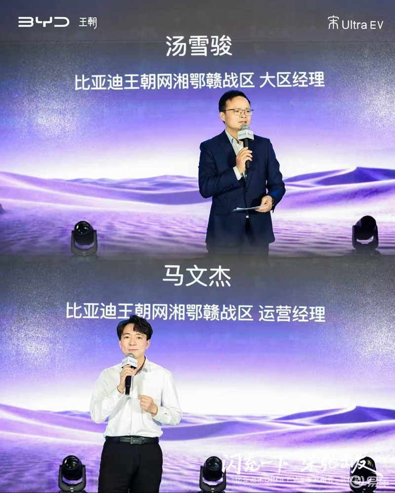 活动现场,比亚迪王朝网湘鄂赣战区大区经理汤雪骏表示,此次宋Ultra EV登陆武汉,不仅是宋家族的全新升级,更是比亚迪以技术普惠用户、推动纯电出行普及的重要举措,将为江城消费者带来更优质、更便捷的纯电出行体验。随后,比亚迪王朝网湘鄂赣战区运营经理马文杰对宋Ultra EV进行了全面技术解读,全方位展现了新车的越级实力,让现场来宾直观感受到这款新车的非凡魅力。