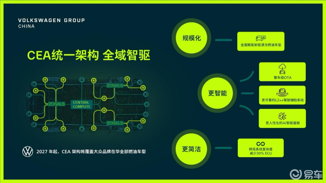 ID.AURA T6首搭的全新CEA电子电气架构,由大众汽车(中国)科技有限公司、CARIAD中国与小鹏汽车联合研发,是大众汽车集团在华首个本土区域控制电子电气架构,从概念提出到量产历时18个月,创下大众集团全新电子电气架构的最快研发速度。